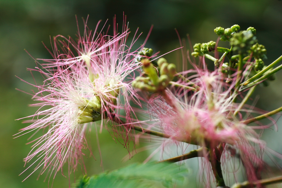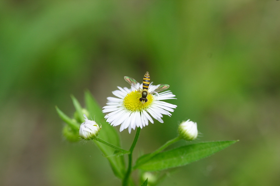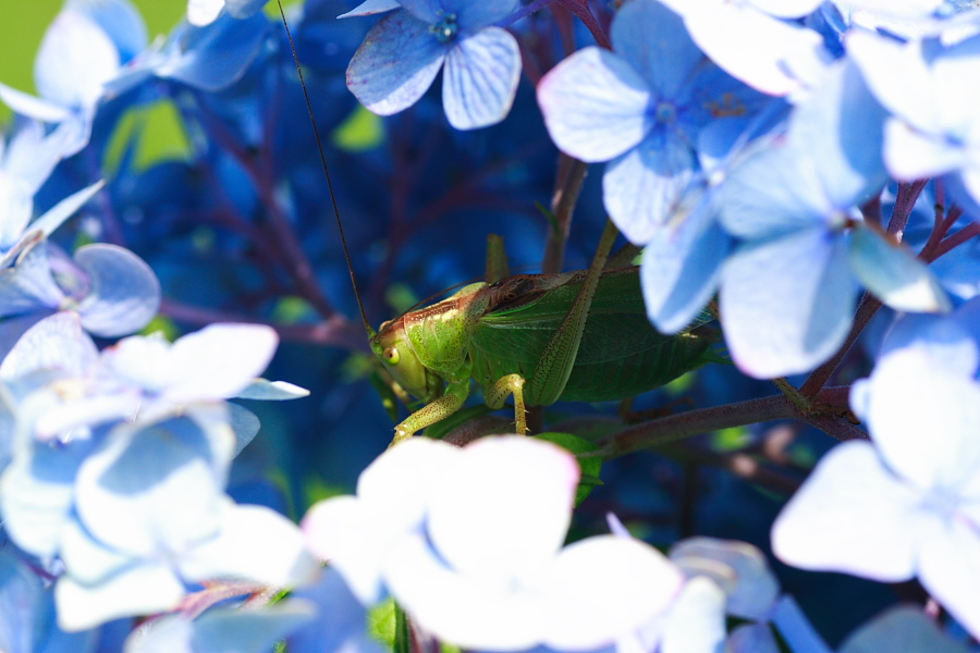 紫陽花の花の中に入るキリギリス。