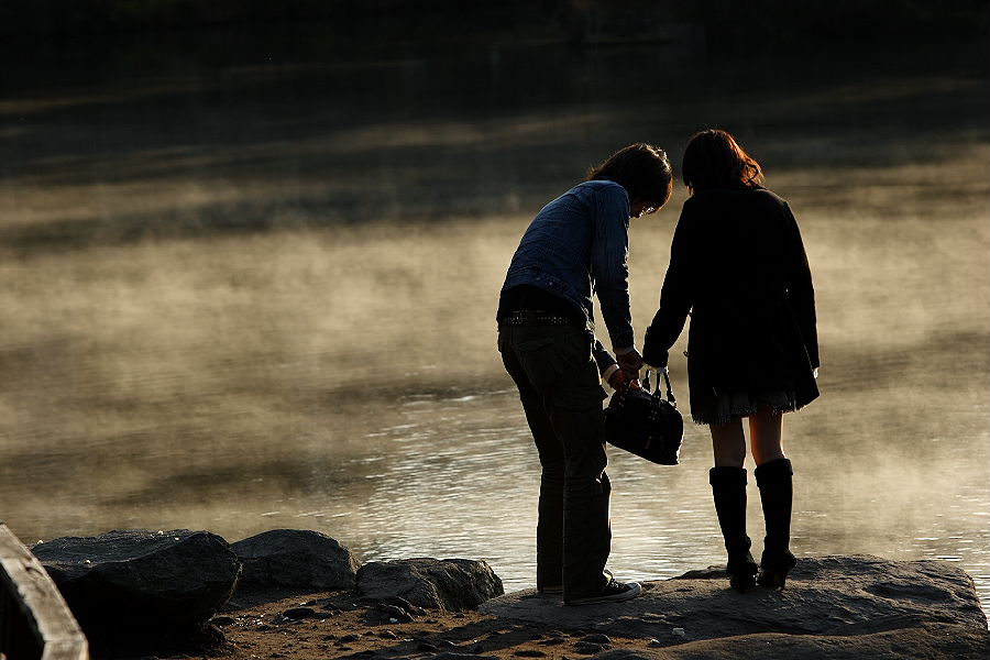 後のモヤは湖に温泉が流れ込んでる為でる湯気です。