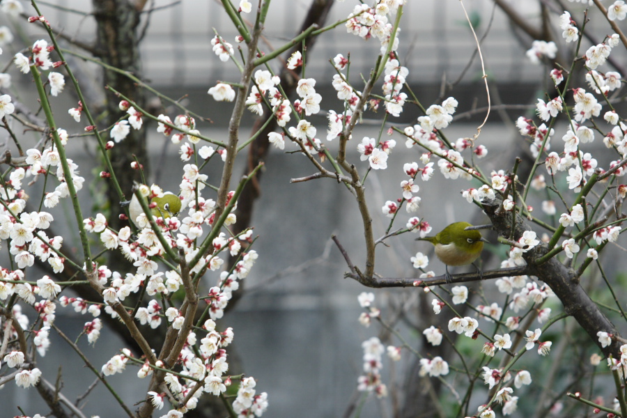 庭の梅の木にウグイスが来ました