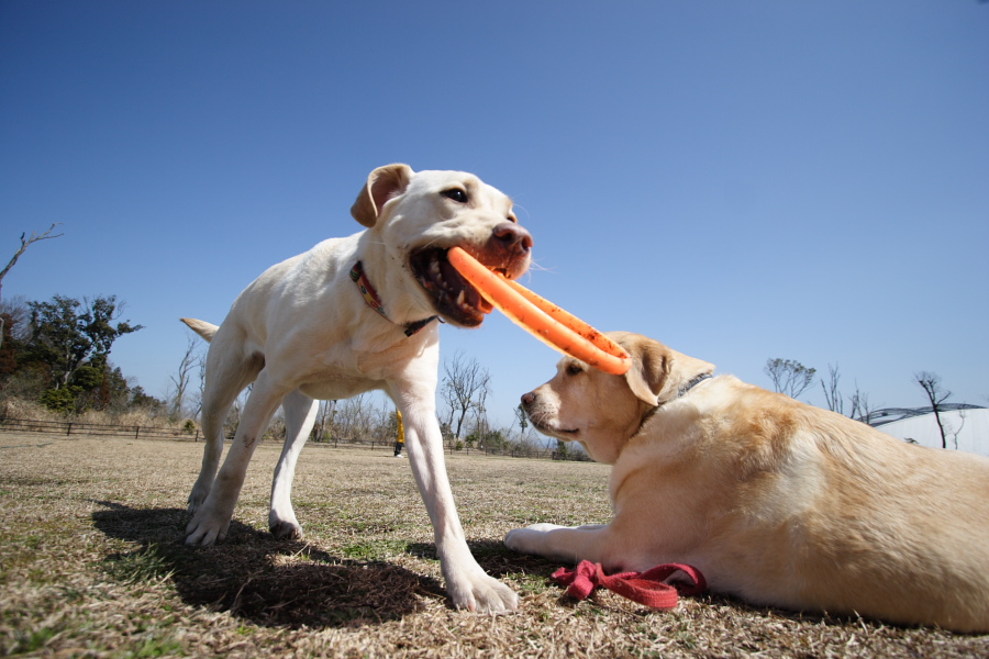 先日の週末友達の犬の佐藤さんと遊びました。